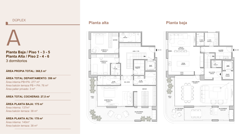 Las unidades de 4 dormitorios se adaptan a familias que desean un hogar funcional, elegante y con suficiente espacio para crecer. Con cocheras, patio y detalles constructivos de nivel premium, estos dúplex se convierten en una excelente opción para quienes valoran diseño y calidad.